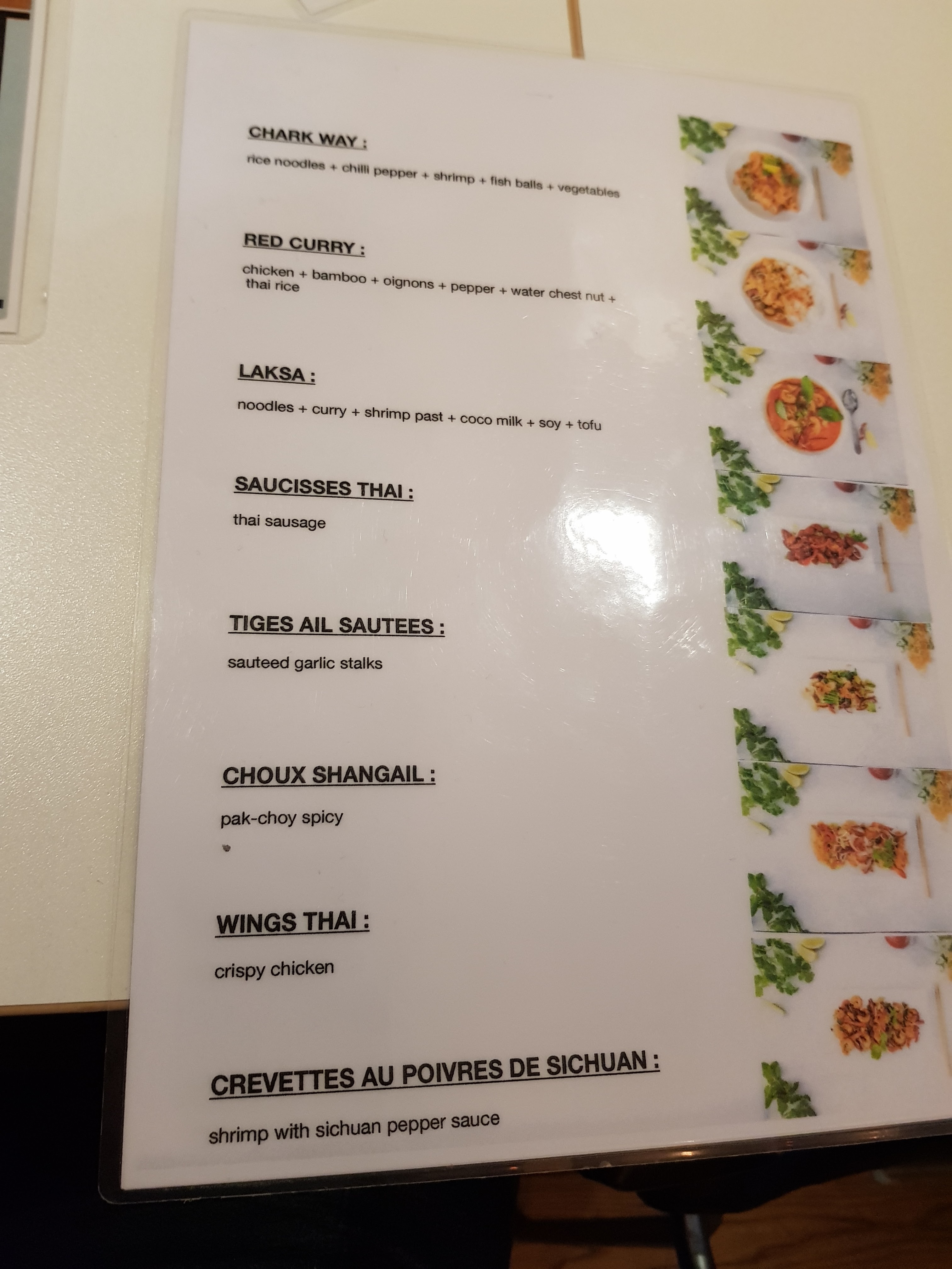 Serveurs super sympa mais quand on y allé il y avait rien au boeuf ou porc. Pour de la nourriture thai c'est dommage. Mon plat baignait dans l'eau, déçue 😢