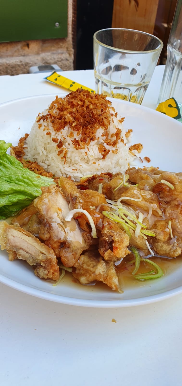 Nous avons été très déçus surtout en lisant tous ces commentaires positifs. Les saucisses à la citronnelle étaient beaucoup trop salés, le riz pateux et immangeable, le poulet croustillant trop gras. Il s'agissait d'une livraison. Tout est malheureusement parti à la poubelle.