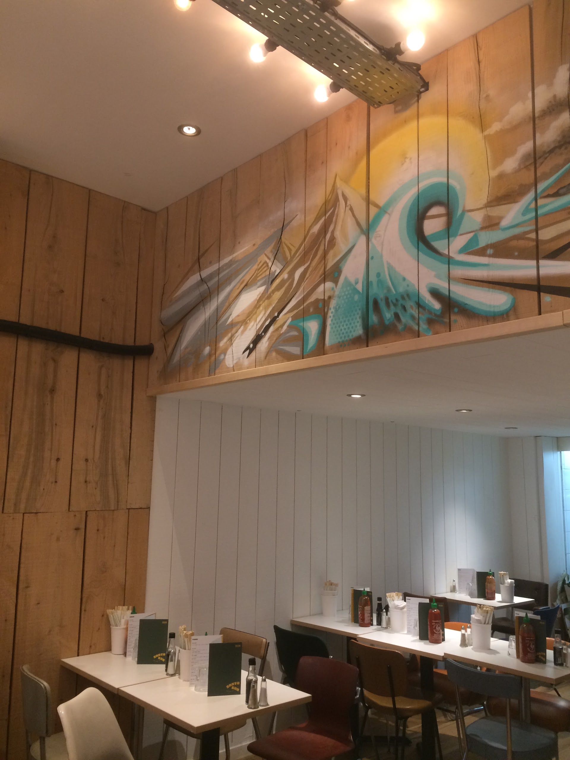 Endroit agréable, moderne ! La cuisine est plutôt bonne mais les crevettes du pad thaï ne sont pas cuite voir à peine décongelées! C’est bien dommage car le reste est à la hauteur. Gros point négatif sur les prix : 11,6€ un plat et 5€ une bière!!!! cela ne donne pas envie de prendre autre chose qu’un plat! Une formule midi serait le bienvenu! Le concept est très bien mais mal ficelé!