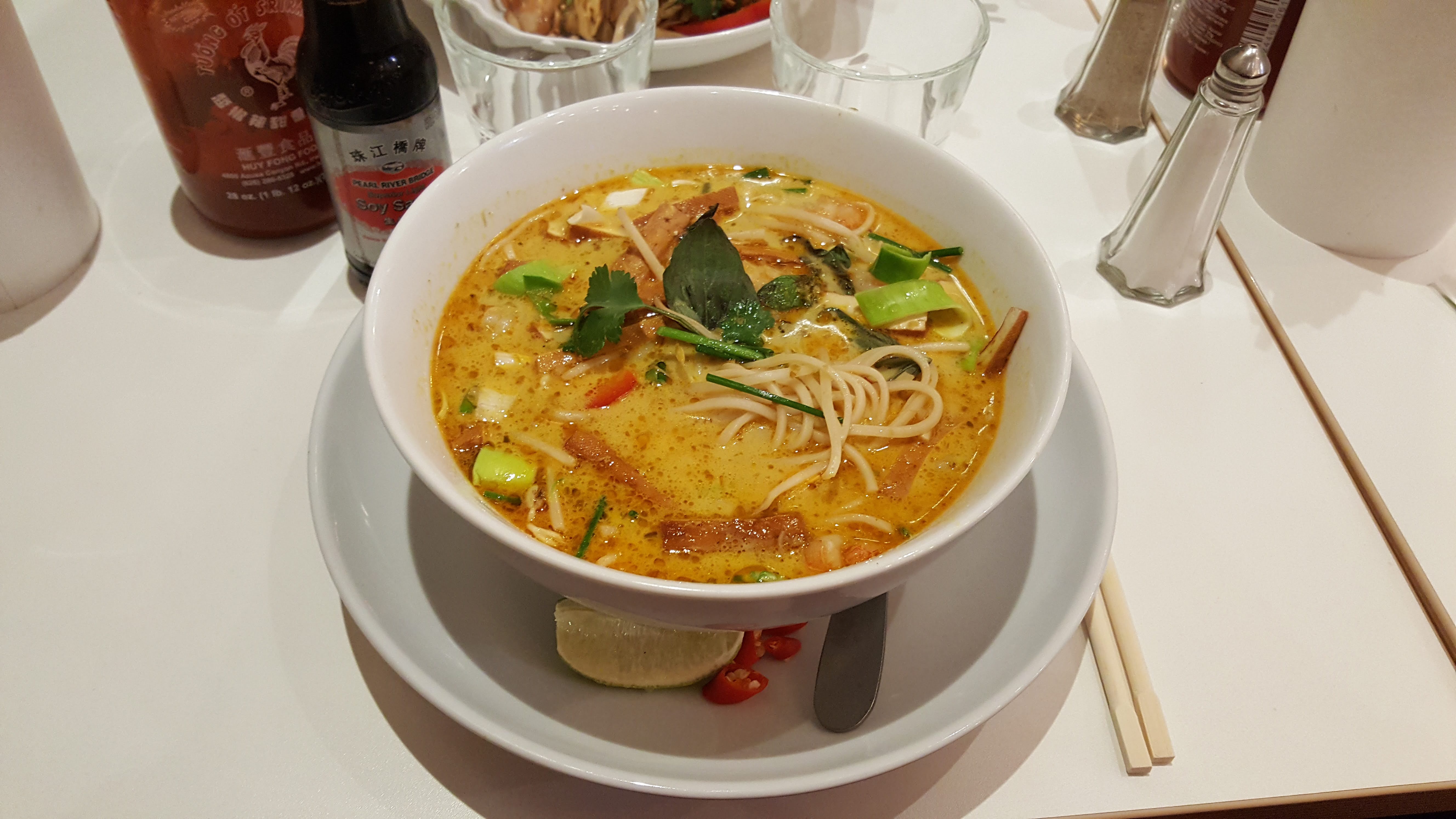 Venues très tard, à deux, en semaine, on a été bien reçues et servies. Le bouillon du Laksa noodles soup est tellement bon ! Et le Pad thaï top ! On est arrivées par hasard et on s'est régalée !