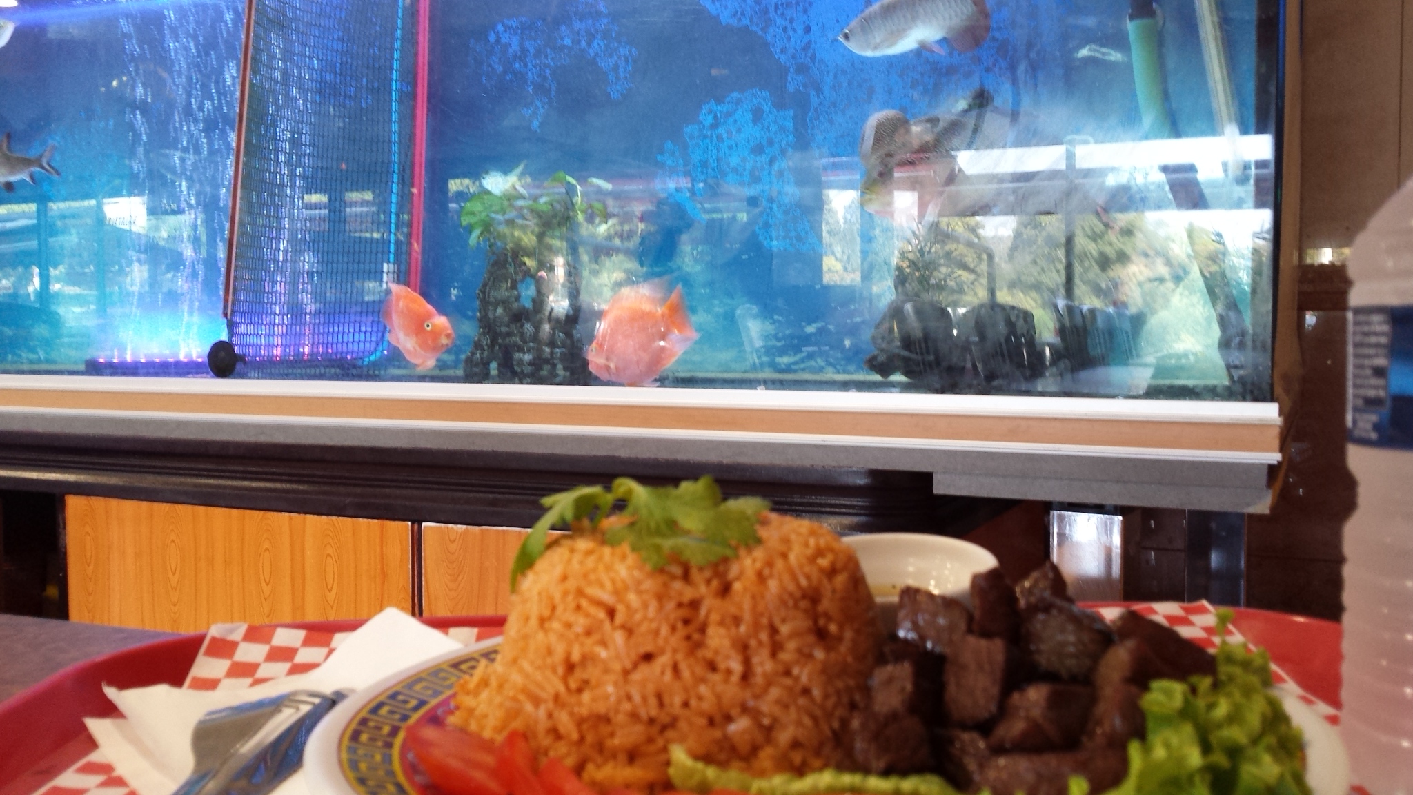 J'ai choisi un plat complet beauf Loc Lac c'est excellent pour 7€. La salle est spacieuse et il y a un grand aquarium de poissons, le dragon à voir!